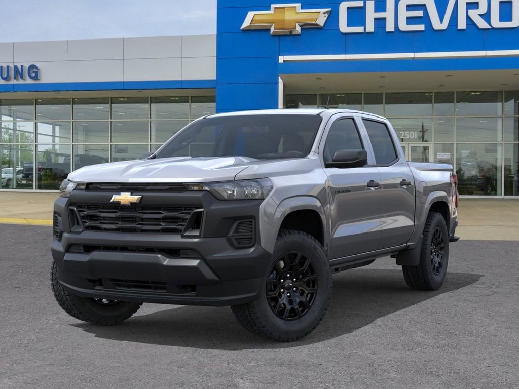 Experience the perfect blend of essential utility and modern connectivity in our 2026 Chevrolet Colorado W/T Crew Cab 4X4 with the Custom Pack in Sterling Gray Metallic. Powered by a 2.7L TurboMax providing 310hp matched to an 8 Speed Automatic transmission that makes it easy to tow and go. You can also enjoy capable handling and impressive payload ratings in this Four Wheel Drive truck, which scores nearly 24mpg on the highway. Our Colorado commands attention with a rugged grille, halogen headlights, black accents, matching beltline moldings, cab-mounted cargo lights, and a CornerStep rear bumper for easy access to the versatile bed.
