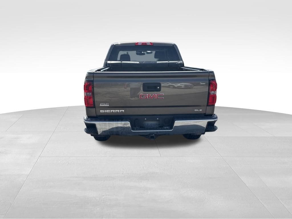 Our Accident Free 2014 GMC Sierra 1500 SLE Crew Cab 4X4 proudly displayed in beautiful Bronze Alloy Metallic is ready! Powered by a 4.3 Liter V6 that supplies 285hp paired with a 6 Speed Automatic transmission for easy passing. This Four Wheel Drive with coil-over-shock front suspension provides a sure-footed stance against Mother Nature and up to 23mpg on the road. Our Sierra is accentuated by 17-inch stainless steel finish wheels, deep-tint glass, and an E-Z lift/lower tailgate.