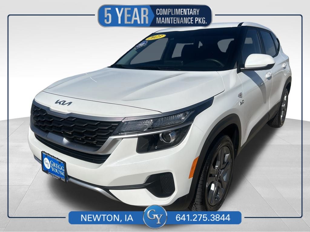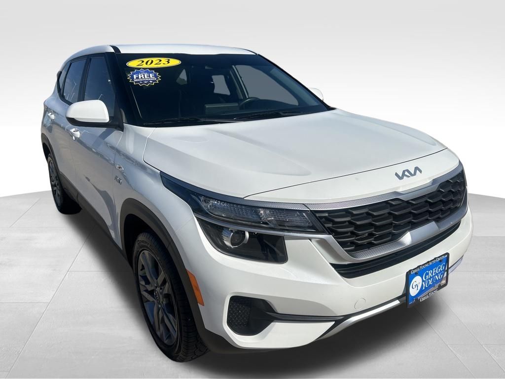 Our stylish One Owner, Accident Free 2023 Kia Seltos LX AWD elevates everyday driving and adventures alike in Snow White Pearl! Motivated by a 2.0 Liter 4 Cylinder supplying 146hp connected to an intelligent CVT that's ready for action. This All Wheel Drive SUV also has a dedicated Sport mode for more spirited performance, plus it scores nearly 31mpg on the highway. A daring design helps our Seltos grab attention with a bold black grille, metal-look skid plates, 17-inch alloy wheels, black side sills, and matte-black lower-door accents.